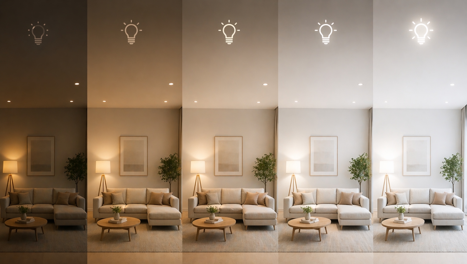 - 2700-3000К (теплий жовтуватий) — суб'єктивно здається "м'якшим" і темнішим при тих самих люменах. Ідеально для спальні і вітальні ввечері.
