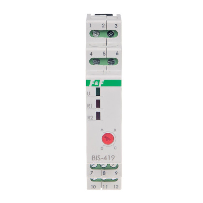 Реле BIS-419 має дві комутаційні секції і дає можливість вмикання відповідно до обраної послідовності двох каналів освітлення, або іншого обладнання з кількох різних точок.
