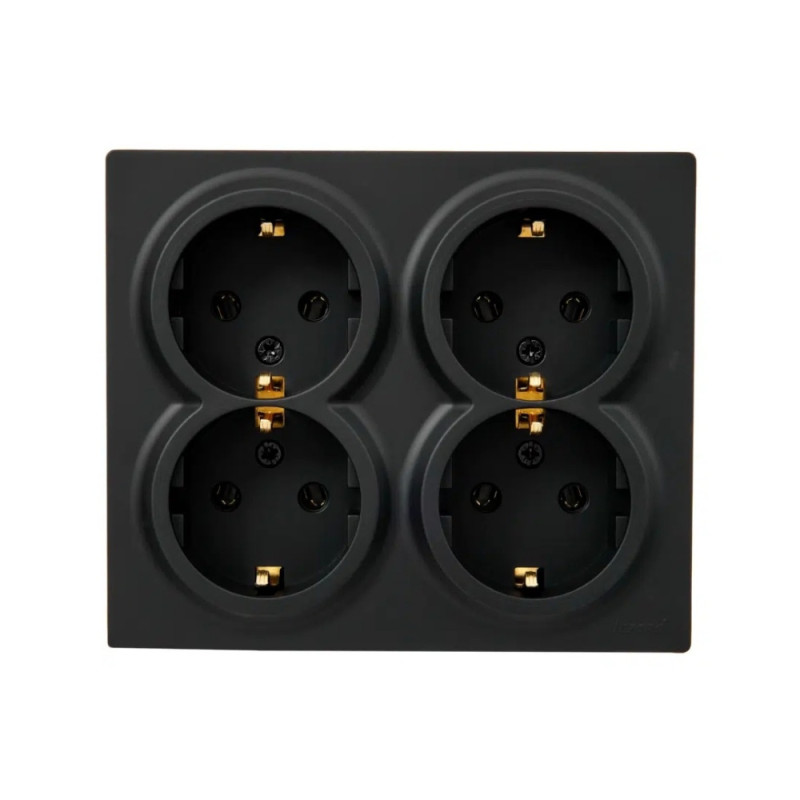 Купив цю розетку для майстерні — сподобалось, що корпус закритий і чорний, виглядає акуратно. Монтується легко, контакти тримають добре. Чотири гнізда з заземленням — зручно для інструментів. Загалом хороша річ за свою ціну.