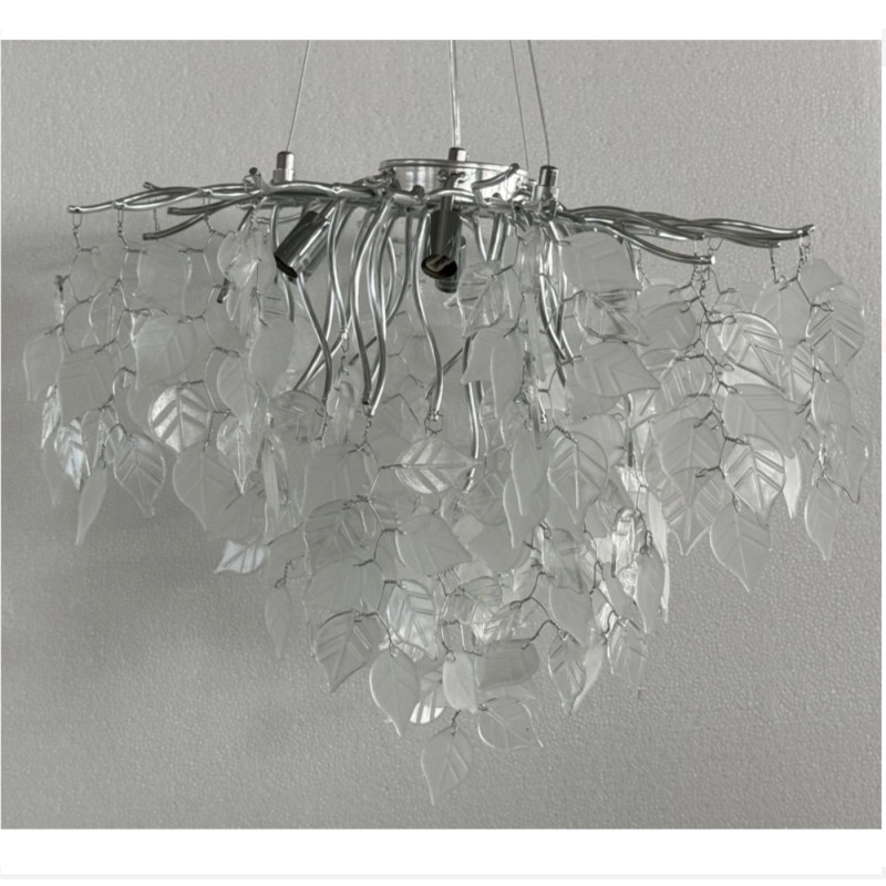 Ця модель із прозорого кришталю та білого матового скла на елегантному сріблястому каркасі створить неповторну атмосферу у вашому будинку чи офісі. Завдяки регульованій висоті люстра легко адаптується до будь-якого приміщення, підкреслюючи його індивідуальність. Ідеальний вибір для віталень, залів, холів та сучасних просторів. Основні характеристики: Колір: Прозорий кришталь + матове біле скло, каркас сріблястий Розмір виробу: D400×H1700 мм (висота регулюється) Цоколь: G9 Потужність: 5×40W Матеріал: Скло + сталь Світловий потік: Джерело світла в комплект не входить