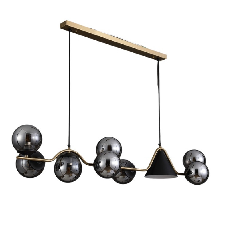 Люстра підвісна V GLD-23938/8+1 виконана у поєднанні бронзового та чорного кольорів, вона привертає увагу своїм елегантним дизайном та здатністю стати центральним акцентом у будь-якому інтер’єрі. Завдяки комбінації металевих деталей і скляних плафонів ця модель надає приміщенню вишуканості та створює атмосферу затишку.