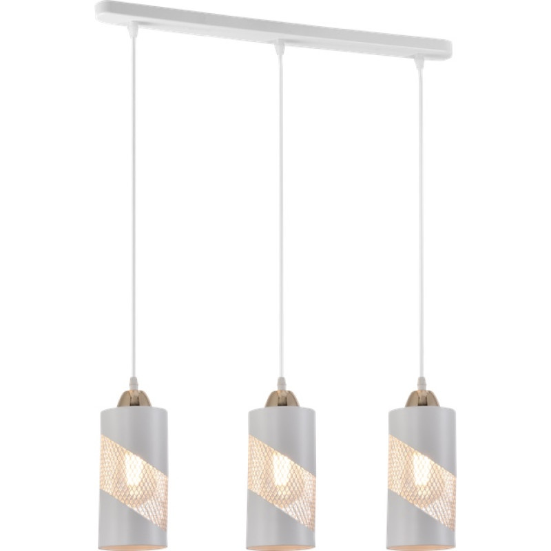 Підвісна люстра V XA3226-3 WH+FGD світильник у дусі лофт, який поєднує строгість індустріального дизайну з благородством золотого акценту. Візуально це проста, але водночас ефектна конструкція: три циліндричні металеві плафони зі сітчастою структурою, пофарбовані в матово-білий колір .