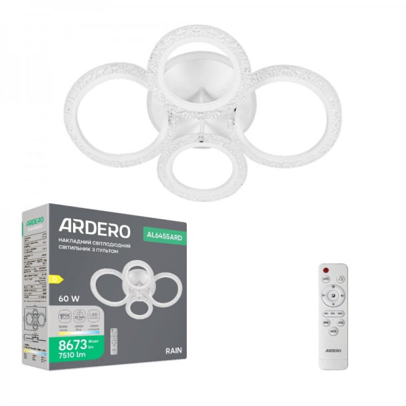 Світлодіодний накладний смарт світильник Ardero AL6455ARD RAIN 60Вт білий 80702