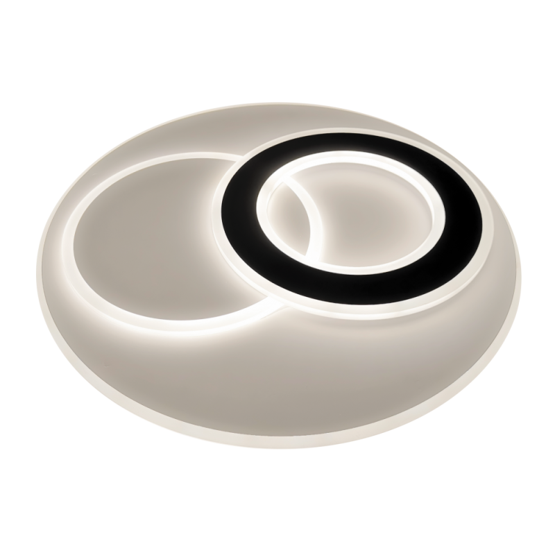 Люстра виконана з алюмінію та акрилу, що забезпечує довговічність, легкість і сучасний зовнішній вигляд. Потужність 70 Вт і світловий потік 4200 лм дають яскраве і рівномірне освітлення. Регульована колірна температура: 3000K (тепле світло), 4000K (нейтральне біле світло) і 6500K (холодне світло). Високий індекс передачі кольору RA>80 гарантує природне передавання кольорів. Клас енергоспоживання A+, термін служби - до 30 000 годин. Ключова особливість цього світильника полягає в можливості зміни колірної температури, потужності та ввімкнення нічного режиму за допомогою пульта, що робить його зручним для створення відповідного освітлення в різних ситуаціях. Розміри люстри: діаметр 500 мм, висота 65 мм.