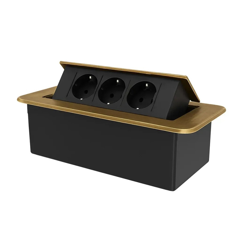 Меблева розетка потрійна LIVOLO бронзова, вбудована у стільницю, для кухні/офісу/конференц-залу, вис