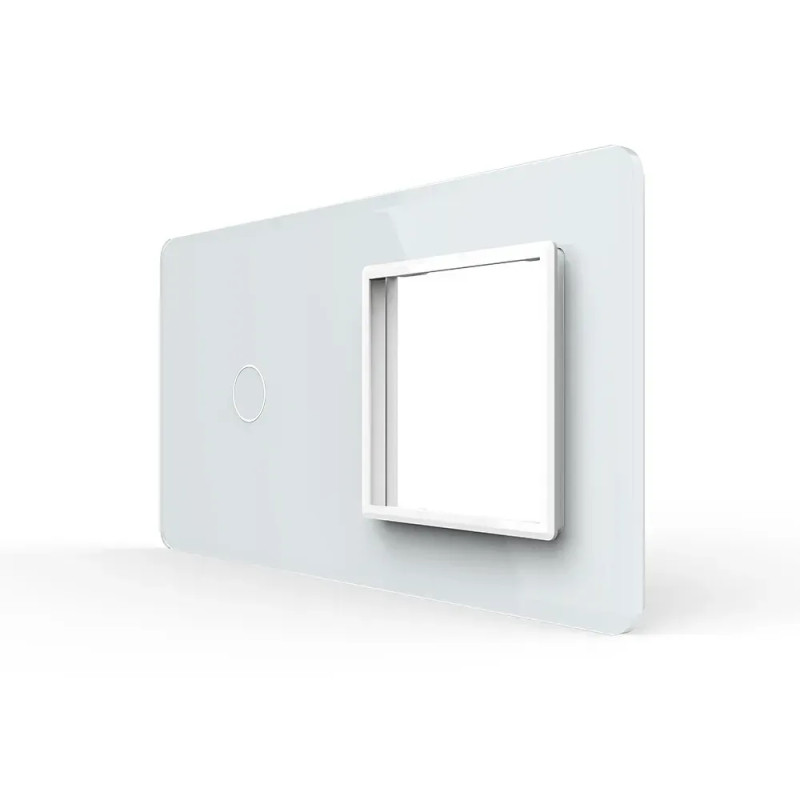 Рамка 2-постова для 1-сенсорного вимикача та розетки (1-0) LIVOLO, загартоване скло, біла 2.5D, 151×