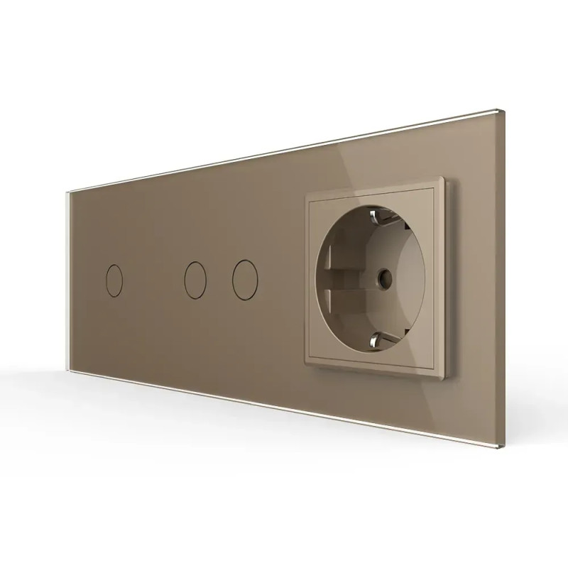 Сенсорний вимикач 3 сенсора (1-2) 1 розетка LIVOLO золотий матовий скло