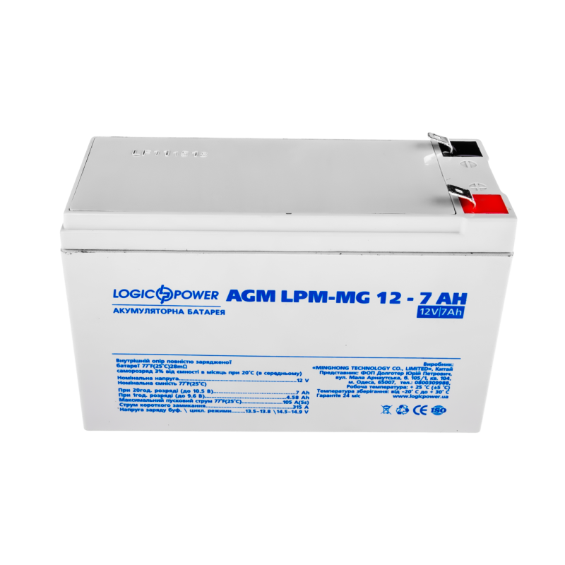 Мультигелевий акумулятор AGM LP-MG 12-7 AH LogicPower — призначений для забезпечення автономного живлення різних приладів та обладнань. Батарея використовується при відсутності доступу до електромережі чи для тимчасового аварійного електроживлення охоронних сигналізацій, опалювального обладнання, генераторних установок, транспортних засобів та іншої техніки, що споживає напругу 12В.