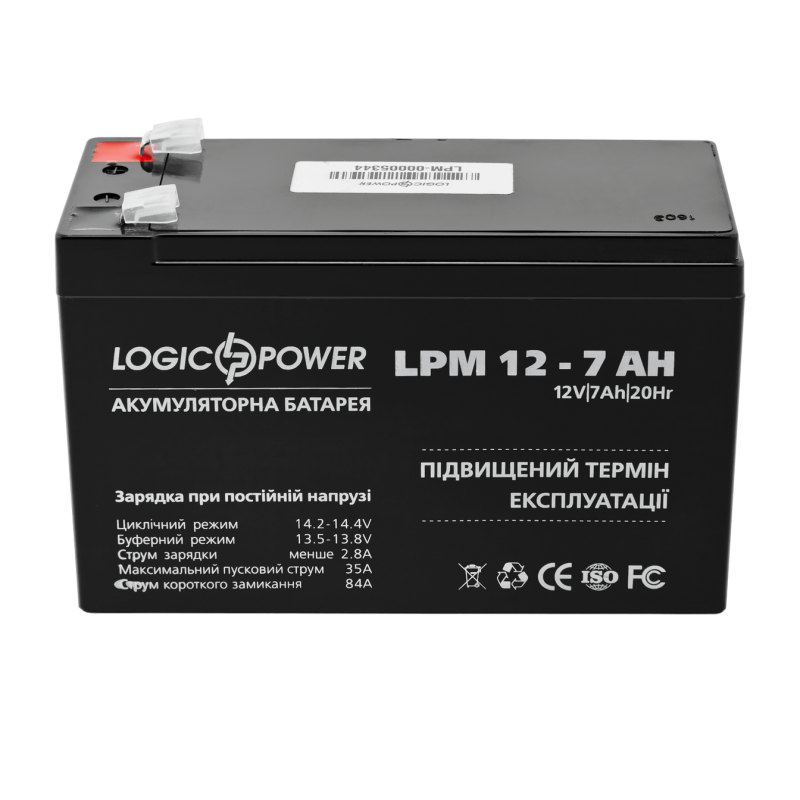 Акумуляторна батарея LogicPower AGM LPM 12-7 AH — це надійне і перевірене автономне джерело живлення для різних пристроїв, що споживають напругу 12В.