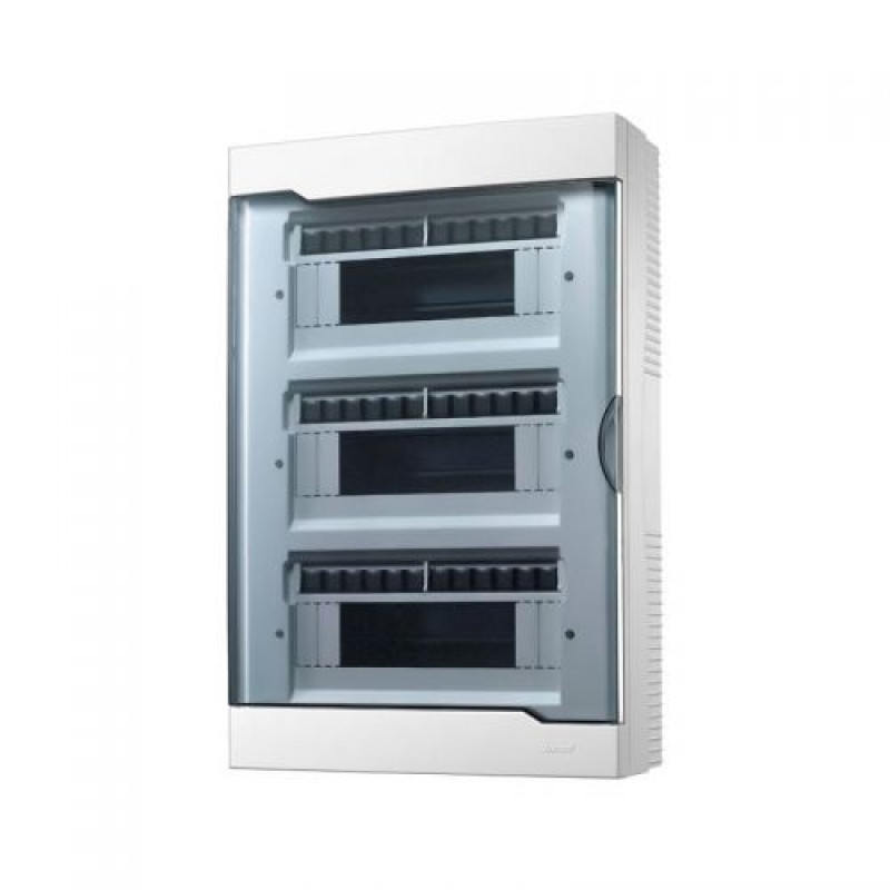 Виготовлений з високоякісного пластику, цей бокс має димчасту дверку, що додає естетичної привабливості та дозволяє легко контролювати стан автоматів, не відкриваючи корпус. Елегантний білий колір та сучасний дизайн дозволяють йому гармонійно вписатися в будь-який інтер'єр. Бокс розрахований на напругу до 400 В і номінальний струм 63 А, має клас захисту IP40, що робить його безпечним у використанні в різних умовах. Розміри становлять 315 х 450 х 93 мм, що робить його компактним і водночас здатним вмістити до 36 модулів.
