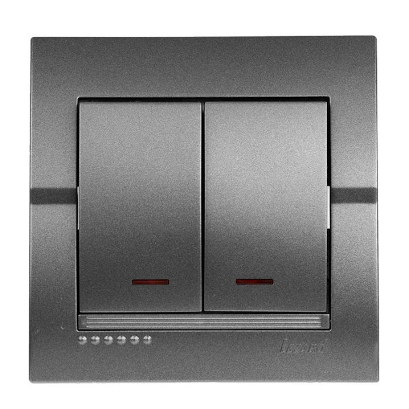 Вимикач двоклавішний з підсвіткою LEZARD Deriy графіт 702-2929-112
