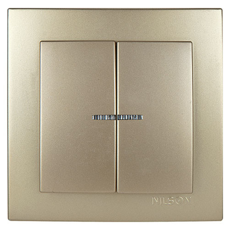 Вимикач двоклавішний з підсвіткою NILSON Touran Золото 24151004