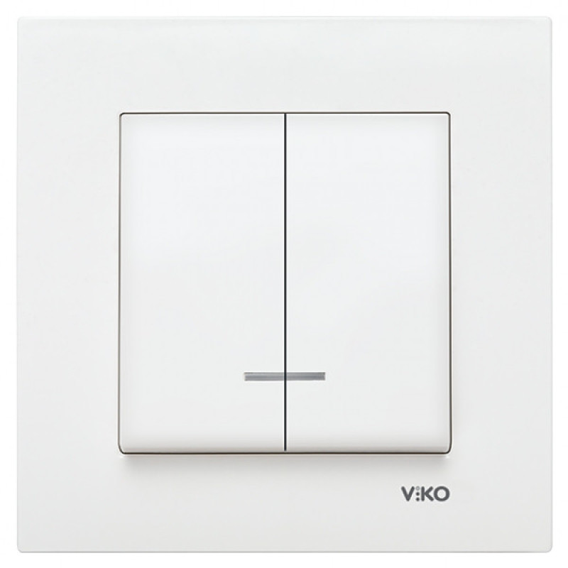 Вимикач двоклавішний з підсвіткою VIKO Karre білий 90960050