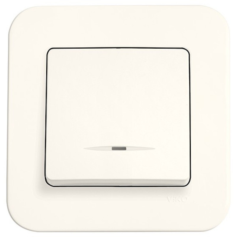 Вимикач одноклавішний з підсвіткою VIKO Rollina крем, зручно вбудовується у приміщення, завдяки акуратному врізному монтажу у спеціальний отвір в стіні, оформлений декоративною рамкою.