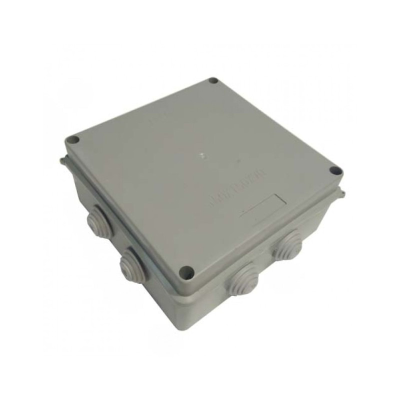 Корпус квадратної форми сірого кольору виготовлений з високоякісного ПВХ, який здатний витримувати широкий діапазон температур і стійкий до зовнішніх впливів. Виріб також має спеціальні отвори по сторонах, для підведення проводів, а зверху коробка закривається кришкою.
