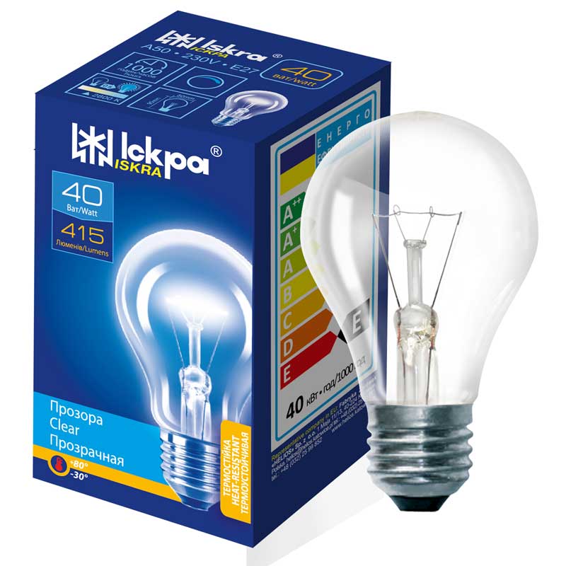 Стандартна лампа розжарювання Іскра А55 40Вт Е27 відносно компактна, часто використовується у світильниках без абажурів або з обмеженим простором усередині плафона.