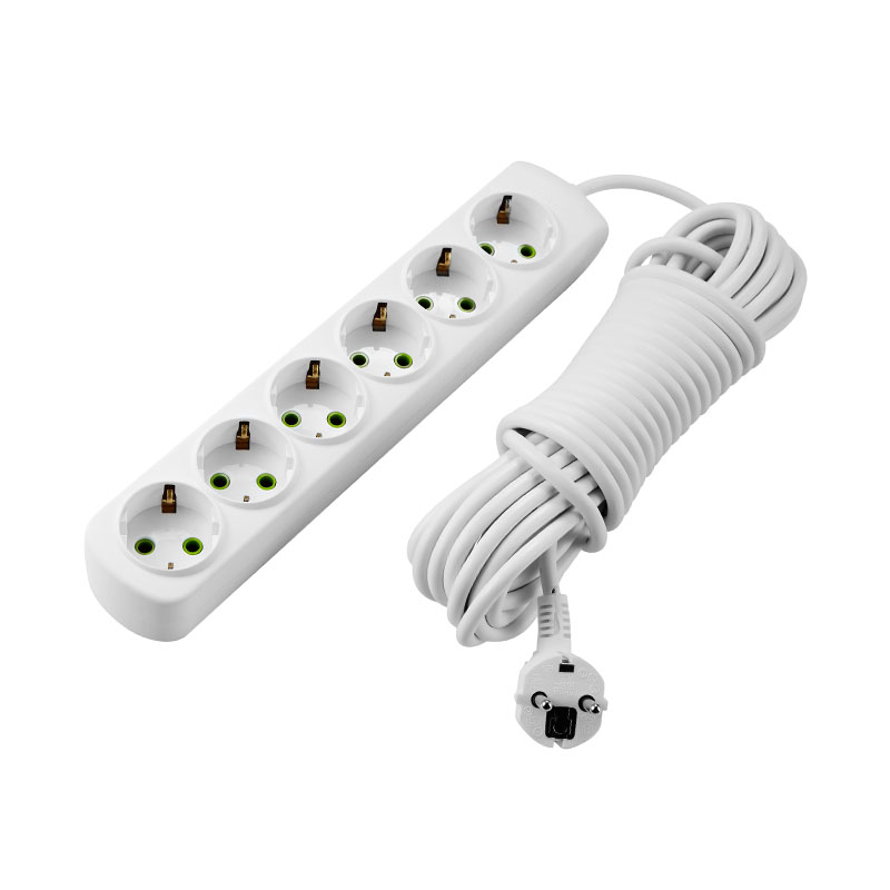 Подовжувач LEZARD Letitia на шість штепсельних гнізд обладнаний заземляючим контактом і п'яти метровим кабелем. Призначений в основному для підключення електропристроїв у місцях, віддалених від стаціонарної розетки. Конструкція багатомісного подовжувача дозволяє одночасно підключати декілька споживачів різної потужності.