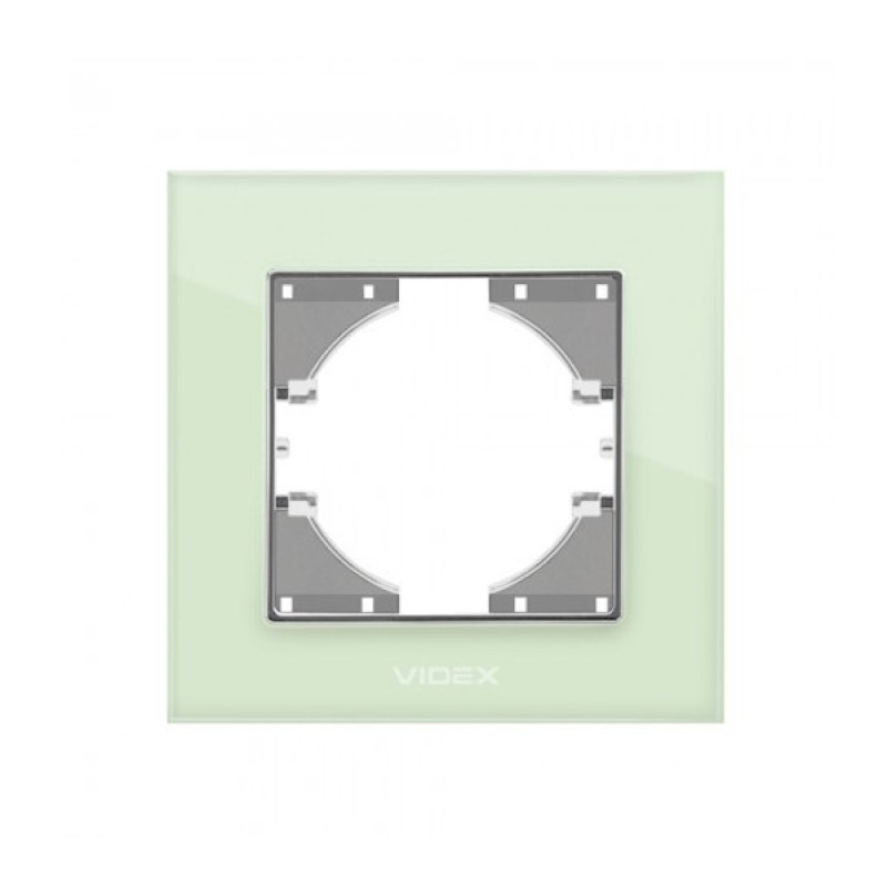 Рамка одинарна горизонтальна VIDEX Binera зелене скло призначена для встановлення з електрофурнітурою. Вона не лише закриває врізний отвір у стіні, виконуючи декоративну функцію, а й забезпечує надійність кріплення монтажної конструкції.