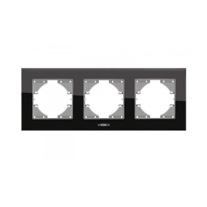 Рамка потрійна горизонтальна VIDEX Binera чорне скло (VF-BNFRG3H-B)