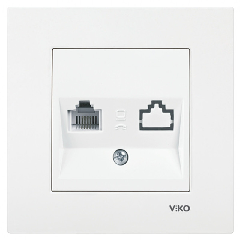 Розетка комп'ютерна VIKO Karre біла - використовується для підключення різноманітного мережевого обладнання (комп’ютери, мережеві принтери і факси) до комп’ютерної мережі. Розетка категорії 5E комутує прилади до мереж Ethernet через виту пару і забезпечує швидкість передачі даних до 100 Мб.