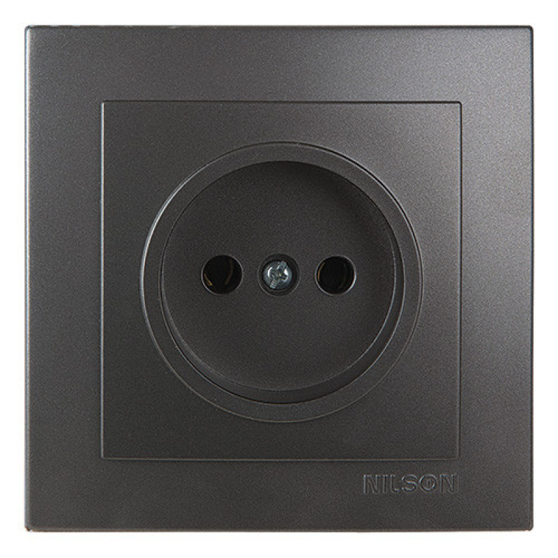 Розетка одинарна б/з NILSON Touran Антрацит - оснащена латунними контактами і зроблена з термостійкого і самозагасаючого пластика. Електрична розетка має класичний дизайн і підійде для будь-якого інтер'єру. Розетка виконана зі спеціального екологічно чистого матеріалу, який володіє додатковим захистом до ультрафіолетового випромінювання. Розетки і вимикачі Nilson Touran призначені для експлуатації в місцях з нормальним рівнем вологості (ступінь захисту від пилу і вологи - IP20).