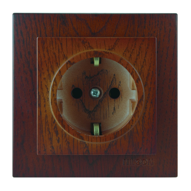 Розетка одинарна з/з NILSON Touran горіх - оснащена латунними контактами і зроблена з термостійкого і самозагасаючого пластика. Електрична розетка має класичний дизайн і підійде для будь-якого інтер'єру. Розетка з заземленням виконана зі спеціального екологічно чистого матеріалу, який володіє додатковим захистом до ультрафіолетового випромінювання. Розетки і вимикачі Nilson Touran призначені для експлуатації в місцях з нормальним рівнем вологості (ступінь захисту від пилу і вологи - IP20).