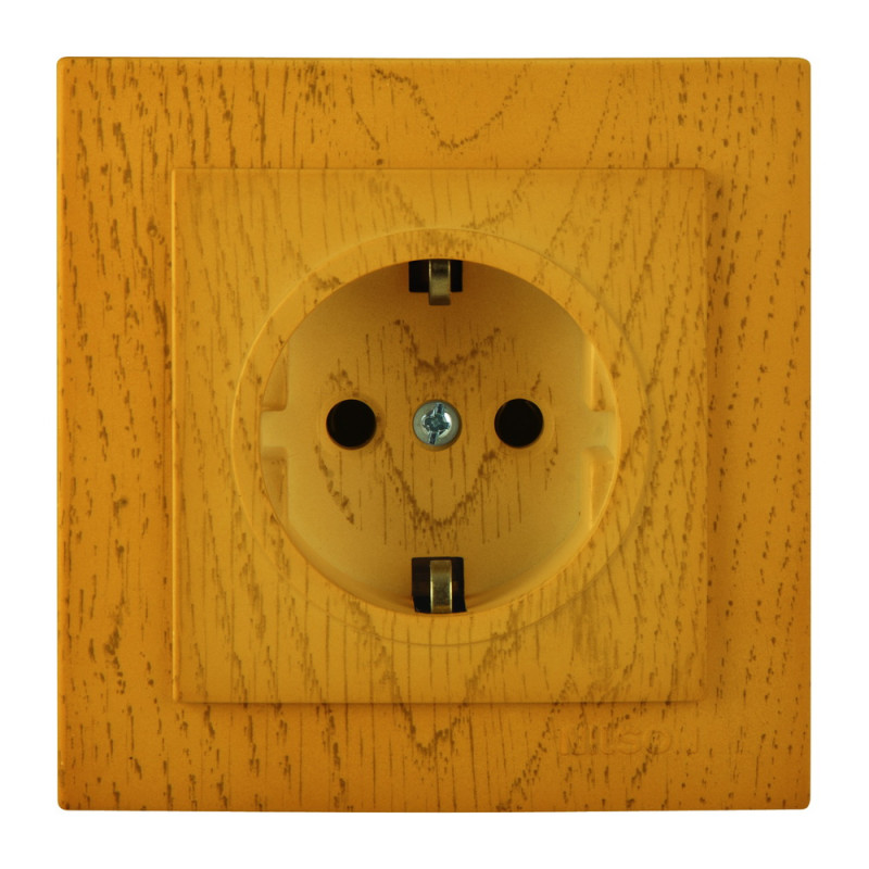 Розетка одинарна з/з NILSON Touran дуб - оснащена латунними контактами і зроблена з термостійкого і самозагасаючого пластика. Електрична розетка має класичний дизайн і підійде для будь-якого інтер'єру. Розетка з заземленням виконана зі спеціального екологічно чистого матеріалу, який володіє додатковим захистом до ультрафіолетового випромінювання. Розетки і вимикачі Nilson Touran призначені для експлуатації в місцях з нормальним рівнем вологості (ступінь захисту від пилу і вологи - IP20).