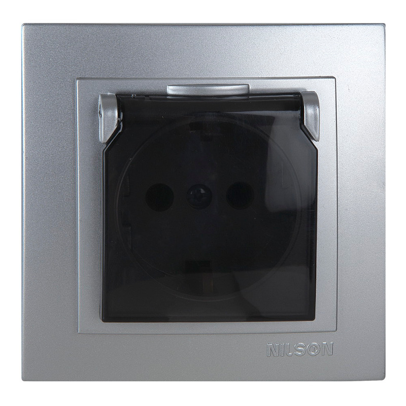 Розетка одинарна з/з та кришкою NILSON Touran Срібло 24131018