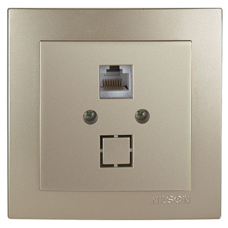 Розетка телефонна NILSON Touran Золото спеціально розроблена для підключення телефонних апаратів і факсів до телефонної мережі. Вона ідеально підходить для врізного монтажу у спеціальний отвір в стіні. У комплекті йде декоративна рамка, що робить установку зручною та естетично приємною.