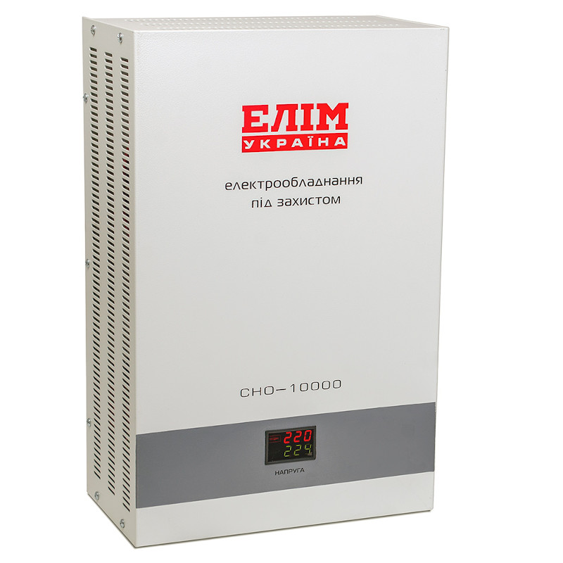 Стабілізатор напруги СНО-10000 — призначений для захисту побутових і промислових електроприладів від різких і значних стрибків напруги та збоїв подачі енергії у мережі. Необхідний для пристроїв, які потребують надійного електроживлення, збої в роботі яких, можуть вивести з ладу, привести до аварійної ситуації, пошкодження майна, зупинки технологічного процесу.