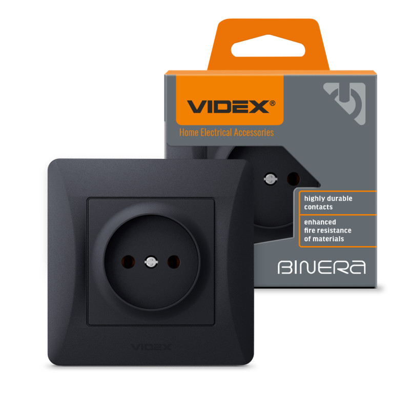 Розетка одинарна б/з VIDEX Binera графіт (VF-BNSK1-BG)