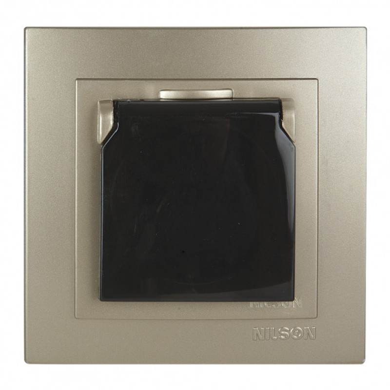 Розетка виготовлена з міцного ABS-пластику, що забезпечує стійкість до зовнішніх впливів. Гладка поверхня і золотистий колір надають їй елегантності. Дизайн розетки забезпечує ідеальне поєднання з іншою електрофурнітурою серії NILSON.