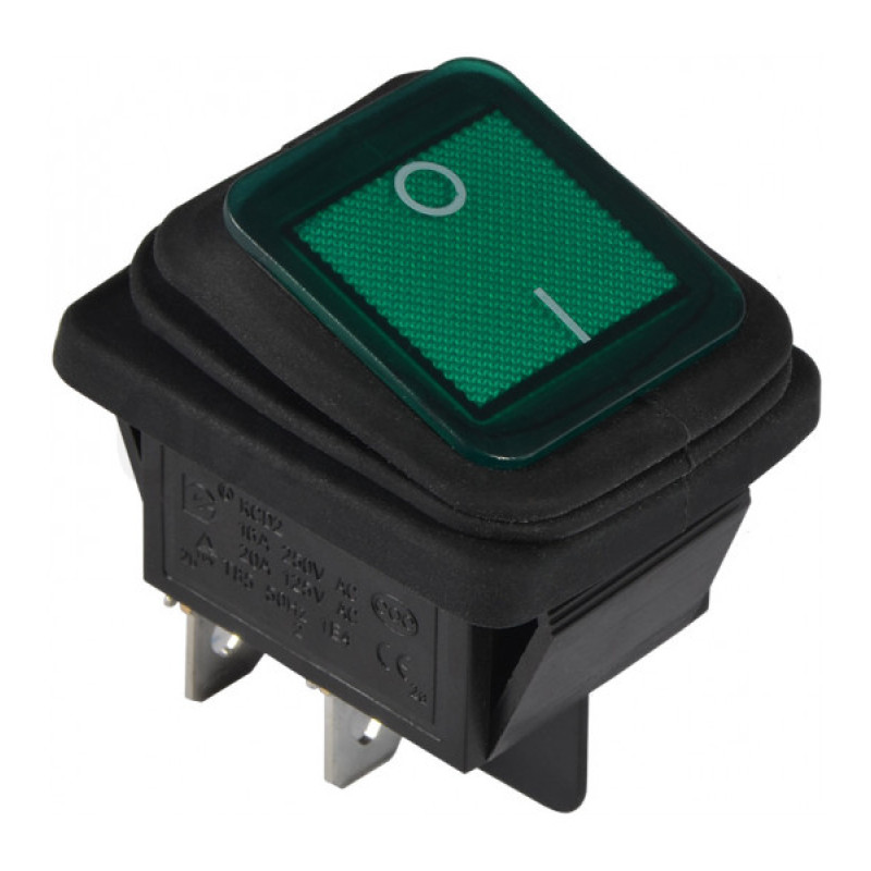 Перемикач АСКО-УКРЕМ KCD2-201WN GR/B 1-клавішний з захистом зелений з підсвіткою A0140040115