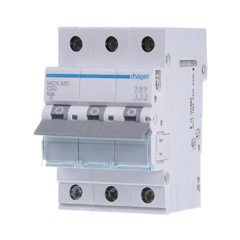 Автоматичний вимикач MCN350 від відомого виробника Hager являє собою трьохполюсний пристрій з характеристиками 6kA та 50A. Він призначений для захисту електричних кіл від короткого замикання та перевантажень. Цей вимикач ідеально підходить для використання в промислових і комерційних приміщеннях, забезпечуючи надійний захист при робочій напрузі до 380V.