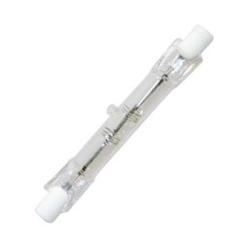 Ця галогенна лампа має низьку споживану потужність 100 Вт, але при цьому виділяє світловий потік 1200 лм. Дана лампа працює при напрузі 220 В та має світлову температуру 2700 К, що забезпечує теплий білий колір світіння.