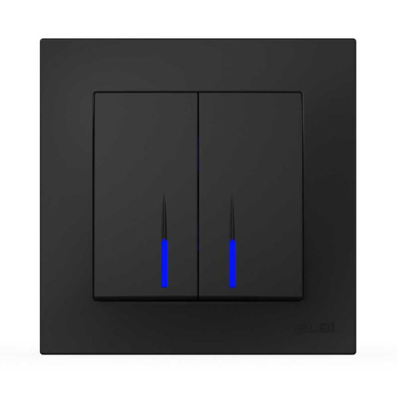 Вимикач двоклавішний з підсвіткою ELBI VEGA матовий чорний є незамінним елементом у сучасних приміщеннях. Стриманий та елегантний, вимикач виконаний у чорному матовому кольорі, що гармонує з різноманітними інтер'єрними рішеннями. Виготовлений з високоякісного нетоксичного ABS пластику, він витримує широкий спектр температур, забезпечуючи надійність використання.