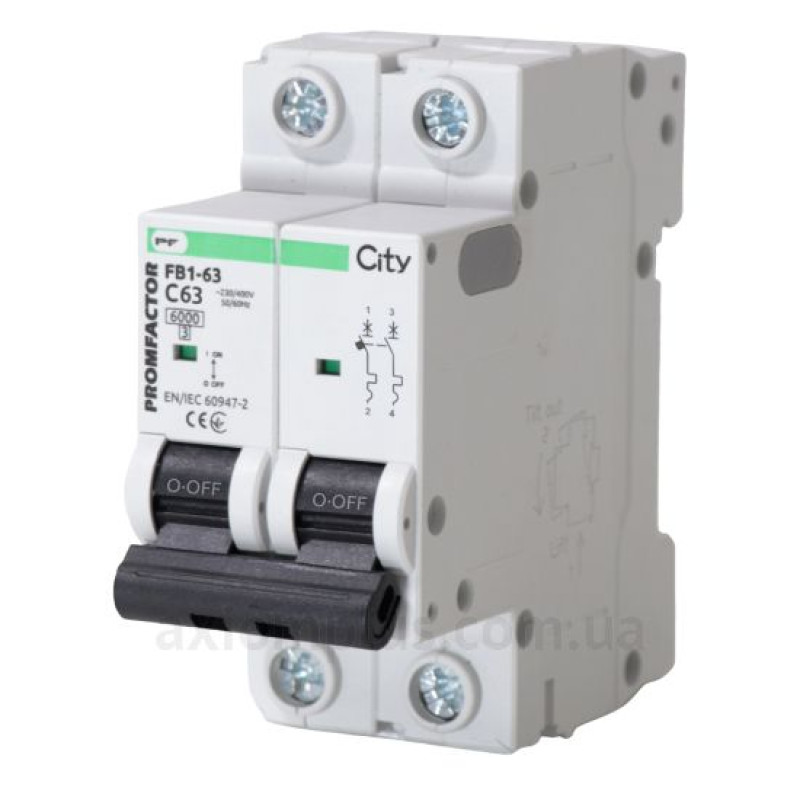Автоматичний вимикач Промфактор CITY 2P C 63A 6кА призначений для застосування на об’єктах громадського будівництва та об’єктах адміністративно-комерційного призначення.