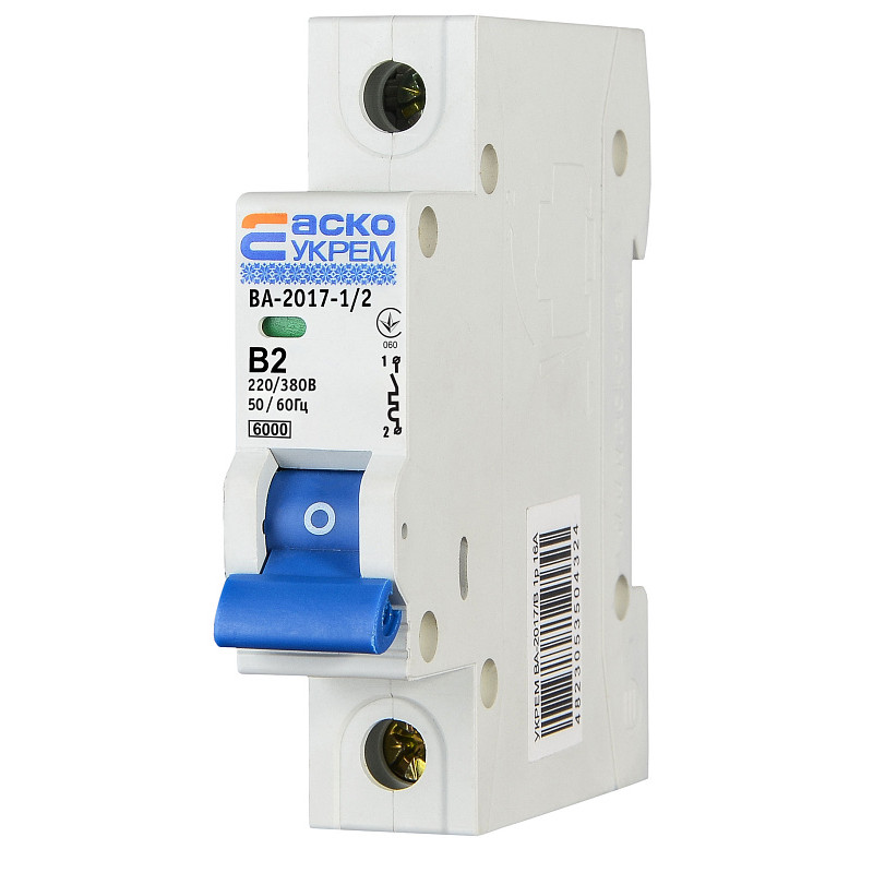 Автоматичний вимикач УКРЕМ ВА-2017/B 1р 2А АСКО (A0010170045) - призначений для оперативних комутацій та захисту низьковольтних електричних кіл від тривалих струмових перевантажень і струмів короткого замикання.