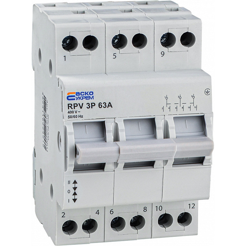 Ручний перемикач вводу (І-0-ІІ) RPV 3P 63A АСКО (A0010220011)