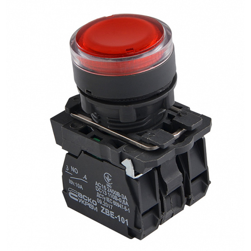 Кнопка з підсвічуванням без фіксації (1НВ+1НЗ) червона TB5-AW34M5, АСКО-УКРЕМ (A0140010174)