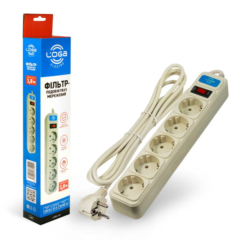 Фільтр LOGA 5 розеток 1.8 метра 3*0,75мм² 10А 1800Вт (L-902)