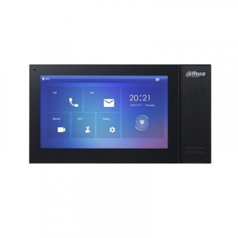 IP домофон Dahua DHI-VTH5441G оснащений кольоровим 10-дюймовим сенсорним дисплеєм TFT LCD з роздільною здатністю 1024х600. Вбудований динамік і всенаправленний мікрофон дозволяє створити двосторонній аудіо зв'язок із відвідувачами. Через тривожні відеовходи до домофону підключаються різні датчики тривоги (підтримка 6 каналів входу, 1-вихід).