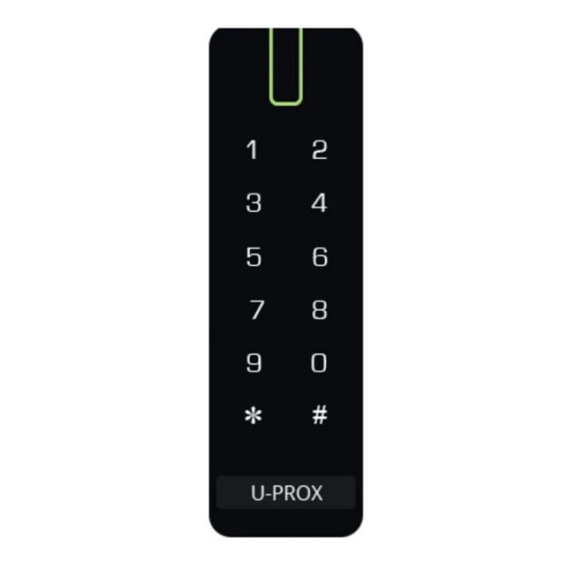 Універсальний зчитувач U-Prox SL keypad серії SmartLine (SL) з бездротовою клавіатурою. Може бути налаштований зі смартфона. Зчитувач разом з додатком U-Prox Mobile ID і мобільними ідентифікаторами U-Prox BLE ID дозволить будь-якій системі контролю доступу використовувати смартфони як облікові дані в СКД.