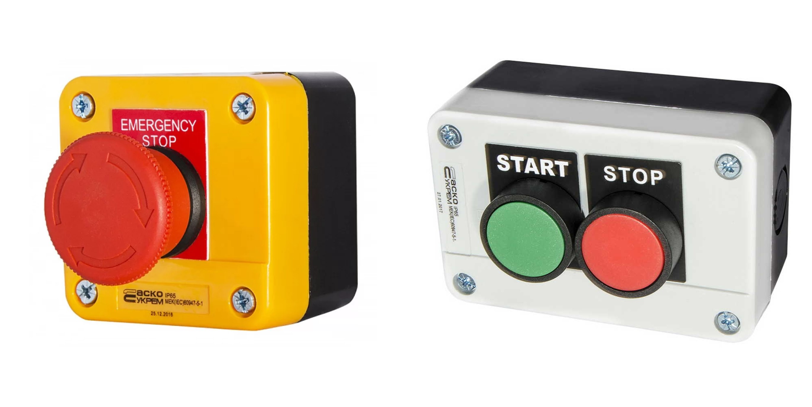 Популярные модели: Пост «Пуск-Стоп» (зеленая+красная кнопки) или пост аварийной остановки (один большой красный грибок с фиксацией). - Пустые корпуса (Кнопочные коробки).