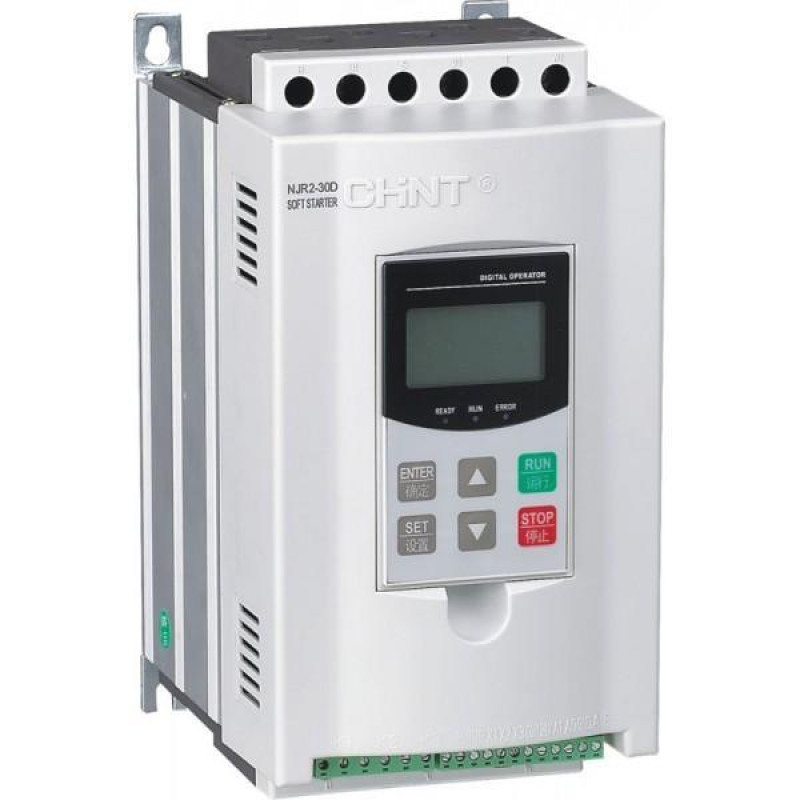 Устройства плавного пуска NJR2 служат для разгона, замедления и защиты трехфазных электродвигателей мощностью до 315 кВт. Управление напряжением, подаваемым на электродвигатель, реализуемое за счет регулирования угла открывания тиристоров, позволяет плавно запускать и останавливать электродвигатель. Устройства NJR2 используются в электрических сетях переменного тока частотой 50 Гц напряжением до 400 В.