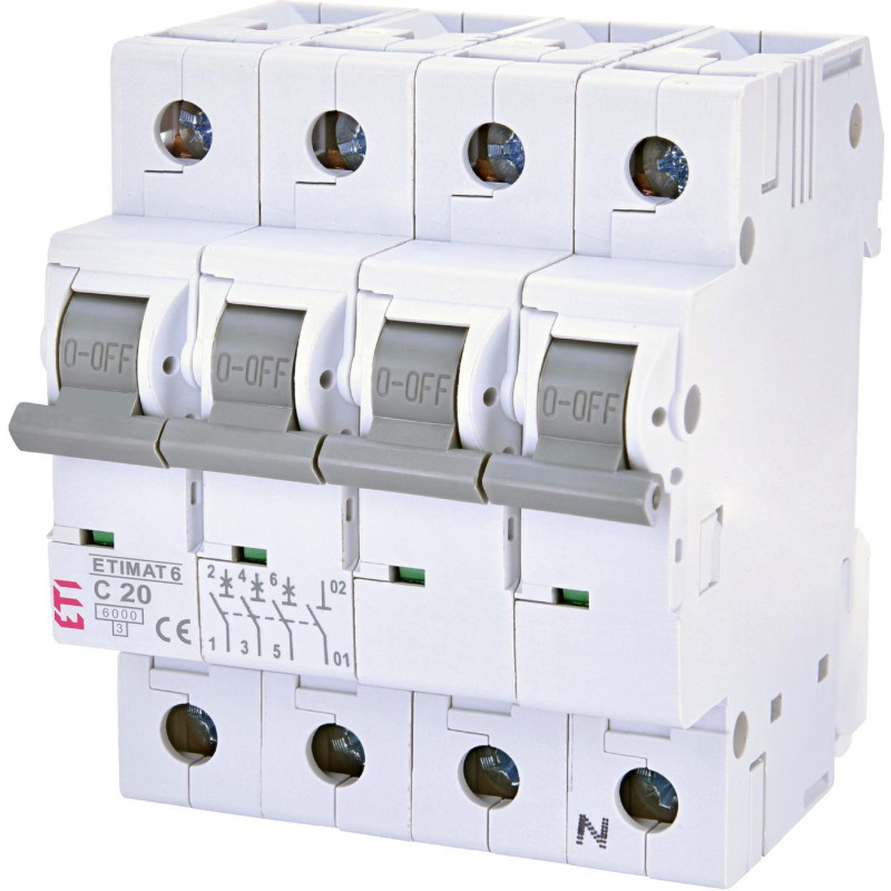 Автоматический выключатель ETIMAT 6 3p+N C 20А (6 kA) ETI (2146517)