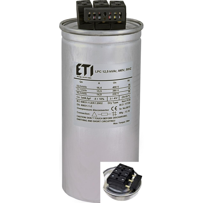 Конденсатор трехфазный LPC 12,5kVAr (440V) ETI (4656761)