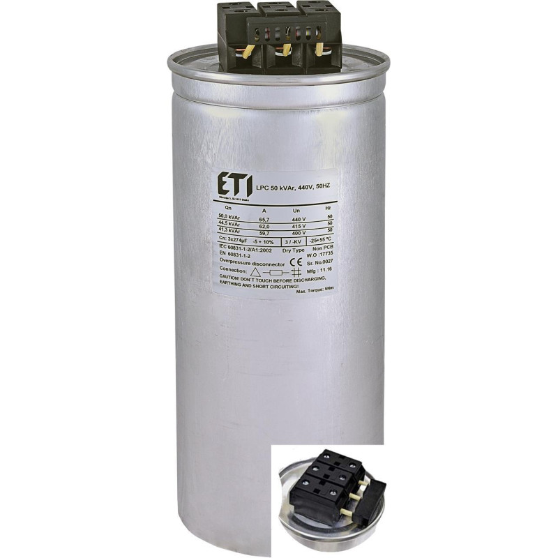 Конденсатор трехфазный LPC 50kVAr (440V) ETI (4656767)