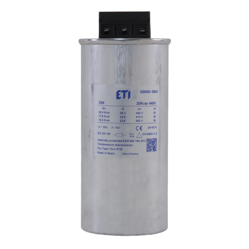 Конденсаторы используются для коррекции коэффициента мощности индуктивных потребителей (трансформаторов, электрических двигателей и т.д.) Запатентованная технология отключения DW (Dual Winding) обеспечивает дополнительную защиту при разрыве электрической цепи конденсатора, с помощью внутреннего давления, возникающего при разрушении обкладок конденсатора от перегрева, вызванного током короткого замыкания.