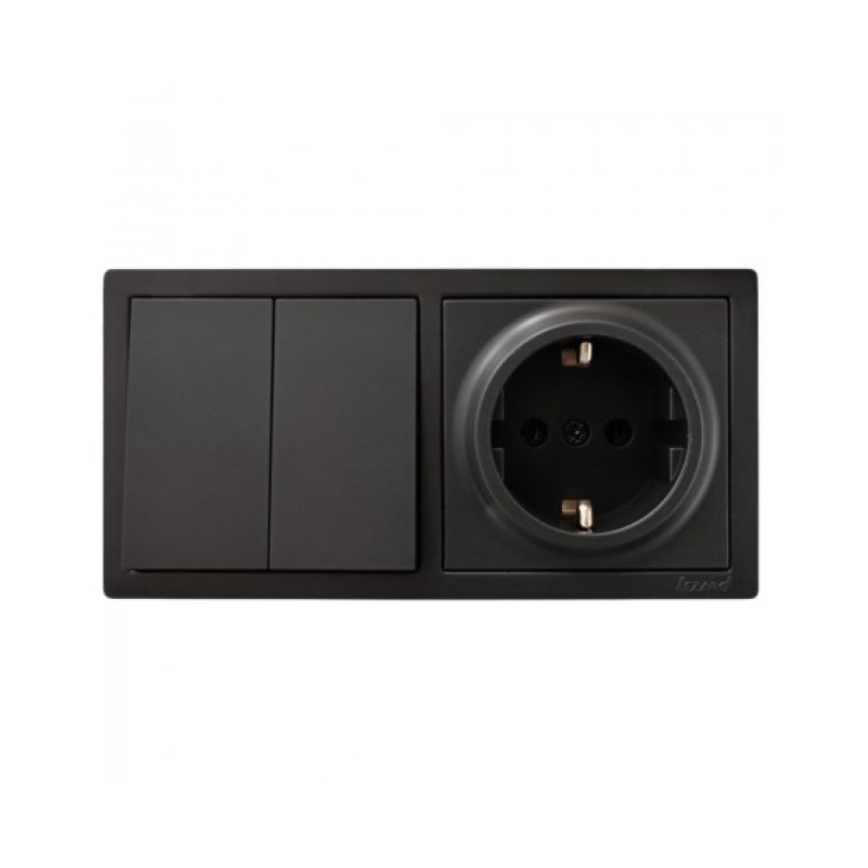 Выключатель 2-й+Розетка 1-я с/з черный 752-4200-170BKP LETO Lezard
